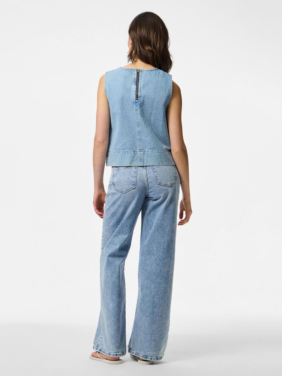 This blue sleeveless denim co-ord set is an essential wardrobe piece for women seeking versatile, modern outfits that combine comfort, style, and contemporary flair.